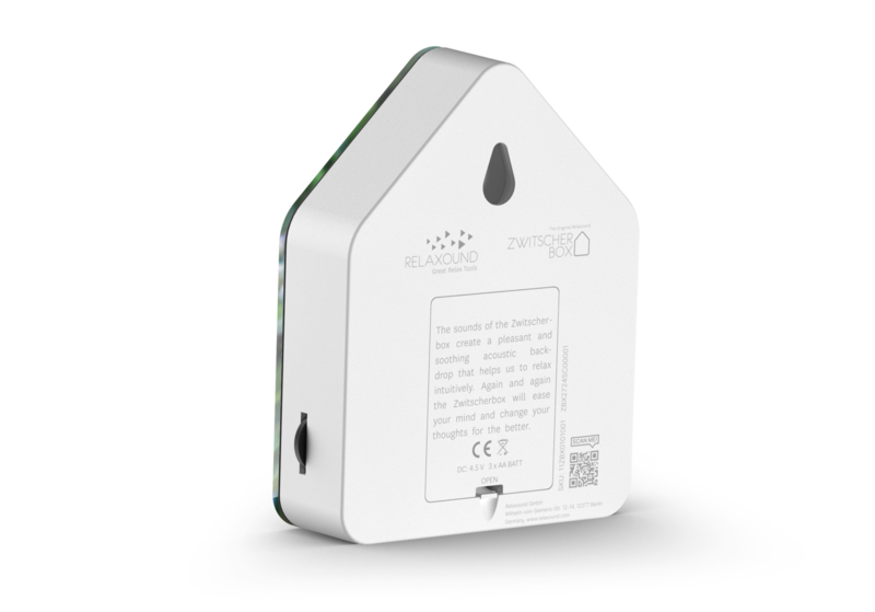 Je activeert het vogelconcert als je langskomt; als er geen nieuwe impuls volgt, verdwijnt deze na twee minuten. Of het nu thuis of op kantoor, in de badkamer of in de gang is, je Zwitscherbox kun je overal neerzetten of gewoon aan de muur hangen.